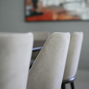 For the Dining Space, we placed sideboard behind the sofa and centred the table and chairs to the entire space. The final touch was all the beautiful glass accessories and elements in brass that again brought in warmth to the Majlis.